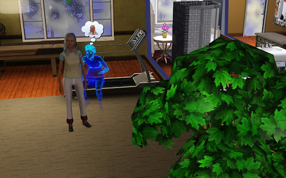 Not everything was "Grim" this winter, however. Shady Acres did throw an epic gift-giving party and invited all the former residents. This may have been a mistake as there were at least two known kleptomaniacs at the party and poor Erika's new bed went missing. It must have been Shawn who did it, because I checked in on Darron, and he didn't have it - but maybe the game doesn't keep track of that stuff if you aren't controlling those sims. Anyway, various gifts were received: lamps, orchids, umbrellas, and stuffed animals. Shaggy even received a globe, and Chanel a gaming system.