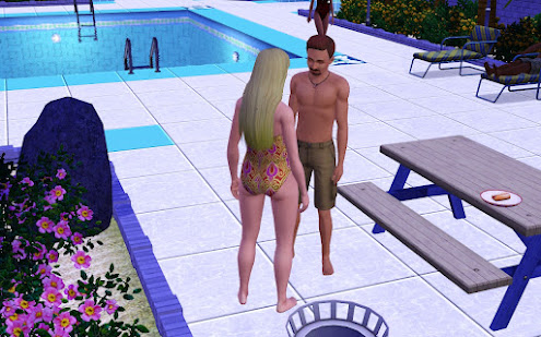 Suddenly, even married men are interested in her. Simis, who is a married man that she barely knows, came to visit her at her house! (He apparently works with Cycl0n3 at the journalism building.) First he bawled her out for something, then he started putting the moves on her. She diplomatically nudged him into friendship rather than romance, but he doesn't understand boundaries at all. She called Cycl0n3 and asked him over, hugged and kissed on him, and even proposed in front of Simis, but when she went to bed Simis did this: