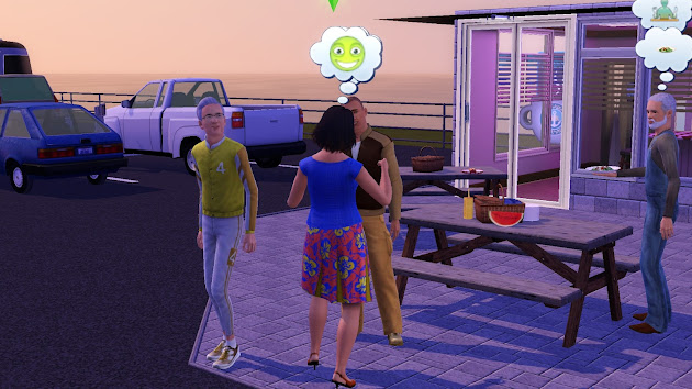 In addition to making sure Coraline got pregnant, I sent her and Frank out on a date to the new ice cream shop in town (created by Hidehi and on the same lot as the new business building rabbithole.)