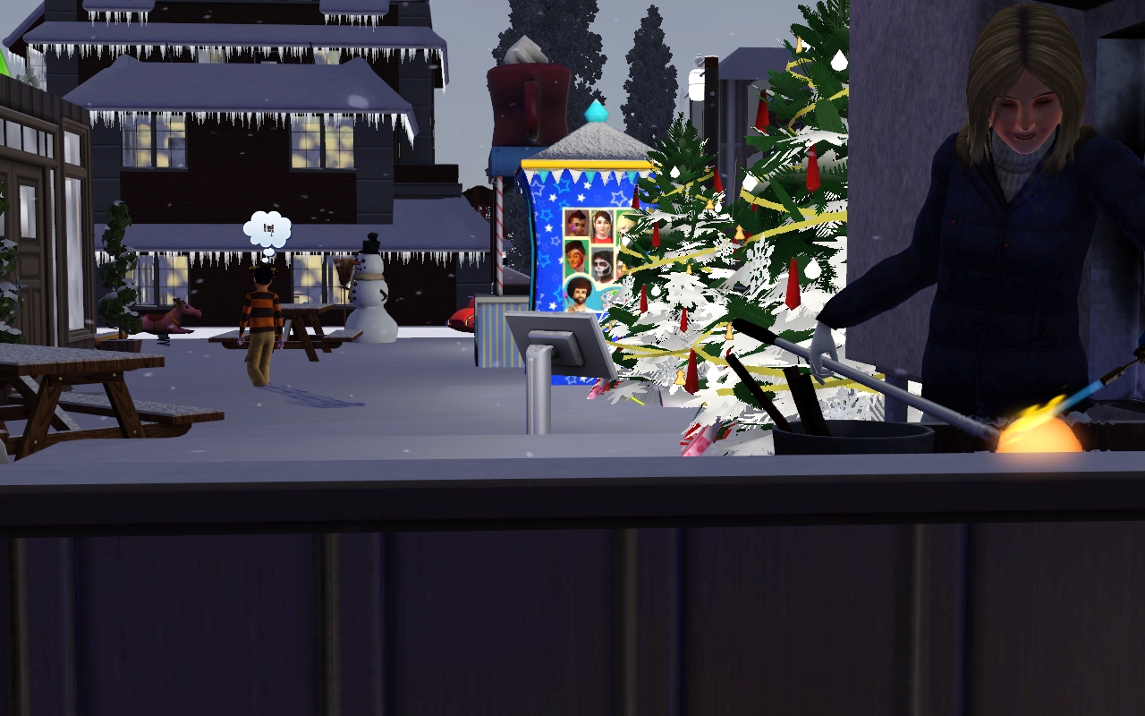 I'm not sure what to do. Should I have her call Troy and talk? Maybe invite him for a visit? Try having a wedding and see if Alex shows up? Tell Alex he's the one with issues and break things off? I'm going to try and be as hands-off as possible and see what they decide to do. Snowflake day is coming, and I thought we'd throw a community gift-giving party a the city hall and invite nearly everyone and see if he shows up. There's a wedding arch on the lot. Maybe Danica can try once to see if he'll marry her and break it off if he doesn't?